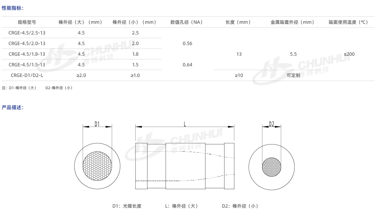 單芯錐:單一纖維錐形光纖棒;
