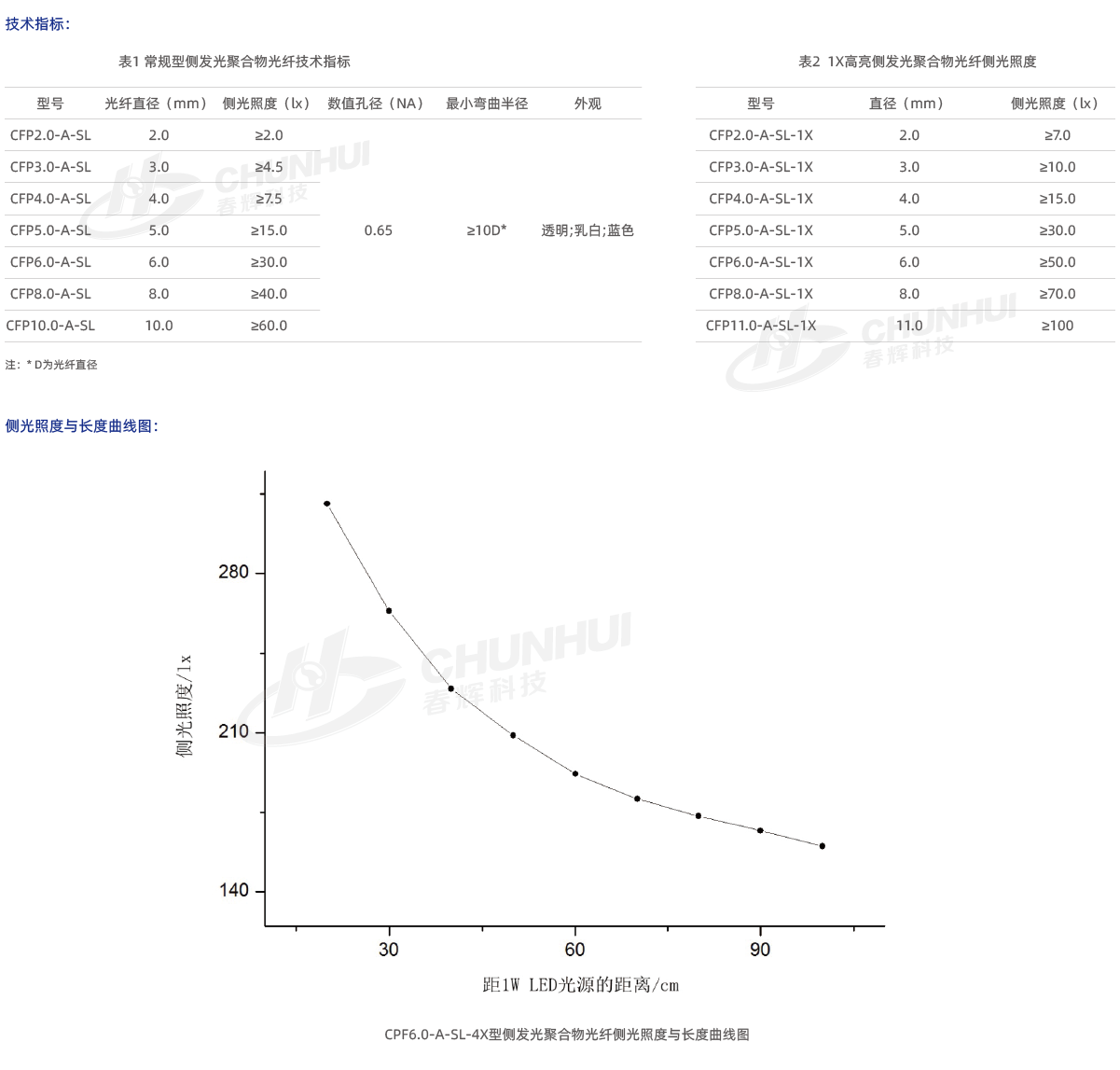 在波長650nm處, 常規(guī)型側(cè)發(fā)光聚合物光纖每米透光率大于90%以上,導(dǎo)光距離可達40m;