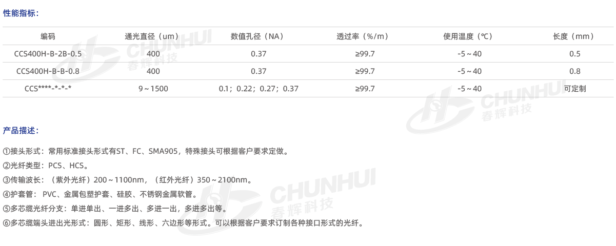 由石英光纖絲、護套管、光纖連接頭組成,主要分為單芯纜、多芯纜